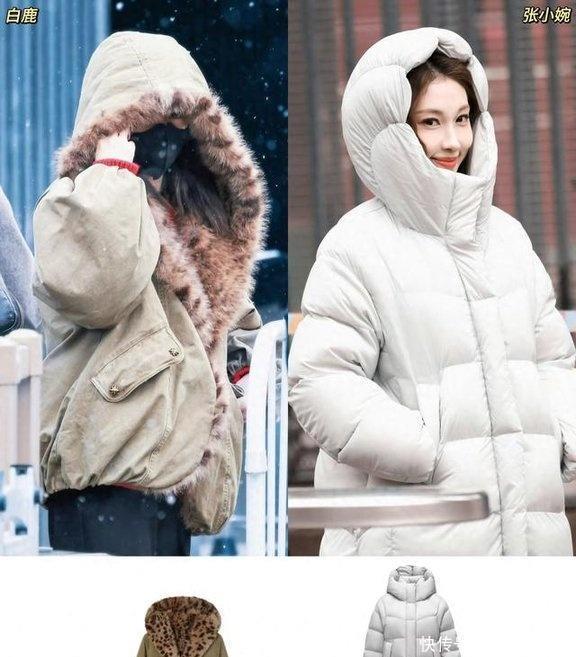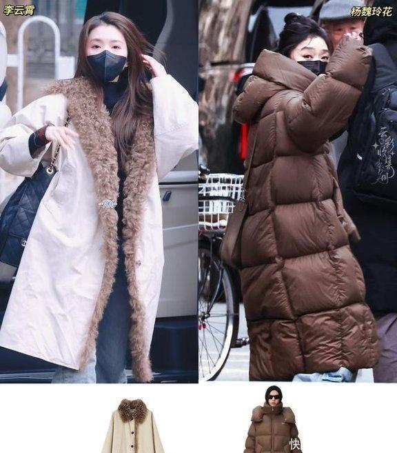 张小婉那件坦博尔米的米白色长款羽绒服,一眼就透出很强的保暖感,款式简单大方。不易过时。李沁和田曦薇身上的两款毛毛外套价位差不多,但田曦薇这件款式显得更好看一些。