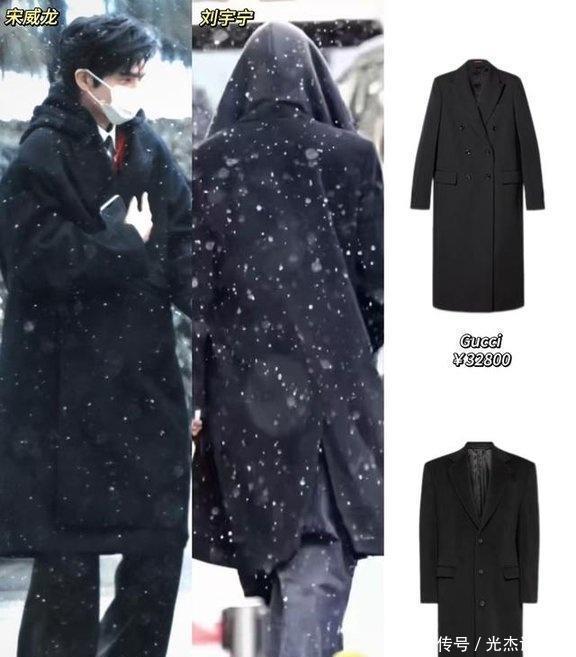 作为高个儿男星,宋威龙和刘宇宁默契地都选择了黑色长款大衣:一个是Gucci,一个是巴黎世家。价格相差不大。他们穿出来的效果非常好,尤其在雪地里。氛围感十足。